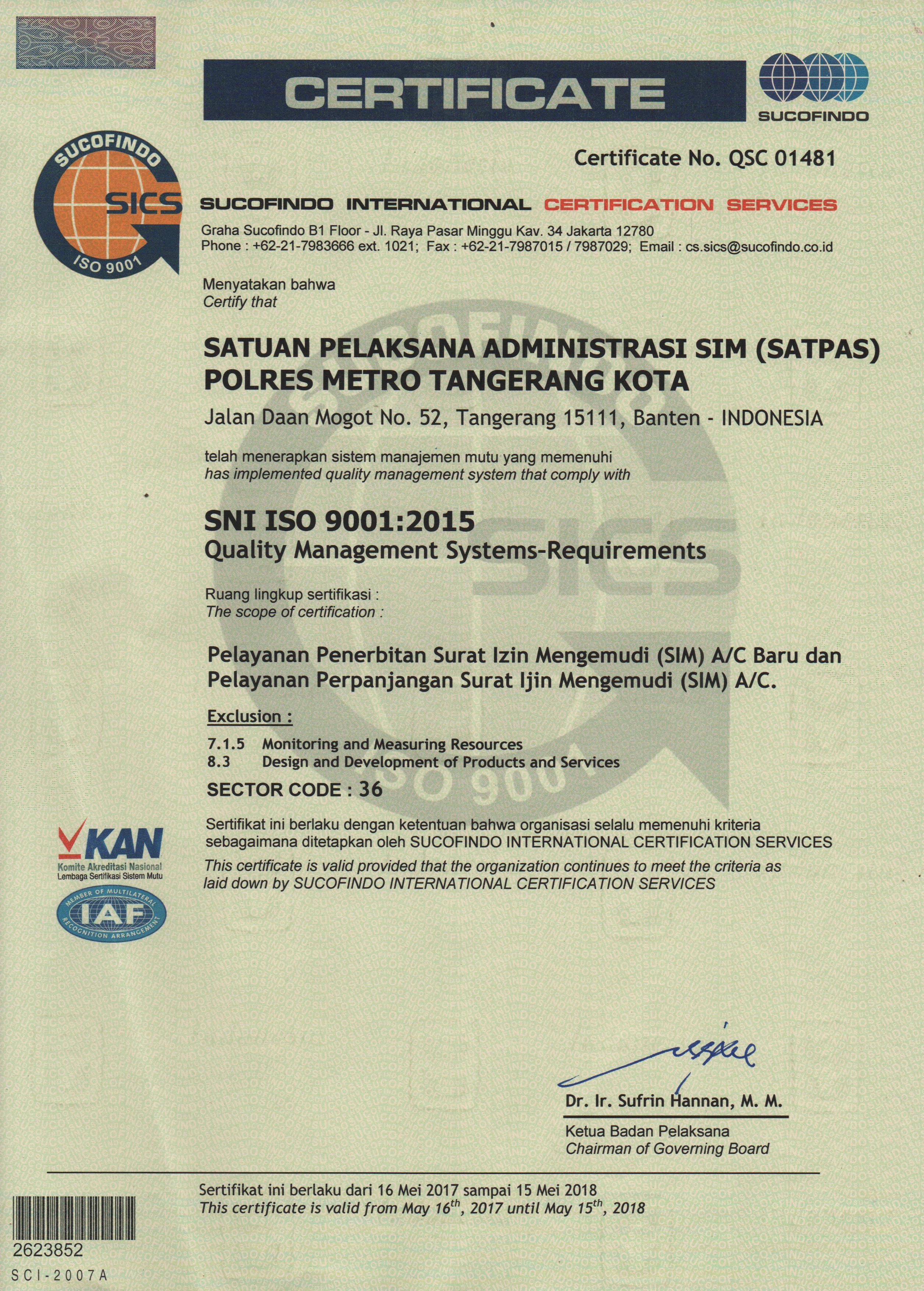 penghargaan ini di raih sebagai satpas yang tetap menjaga mutu